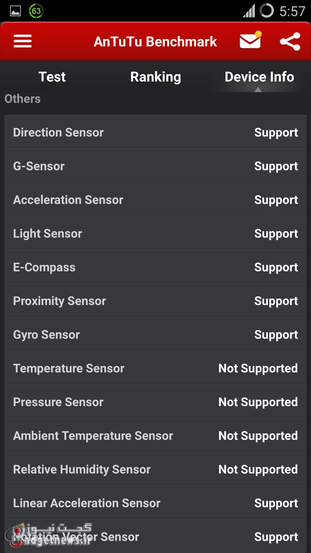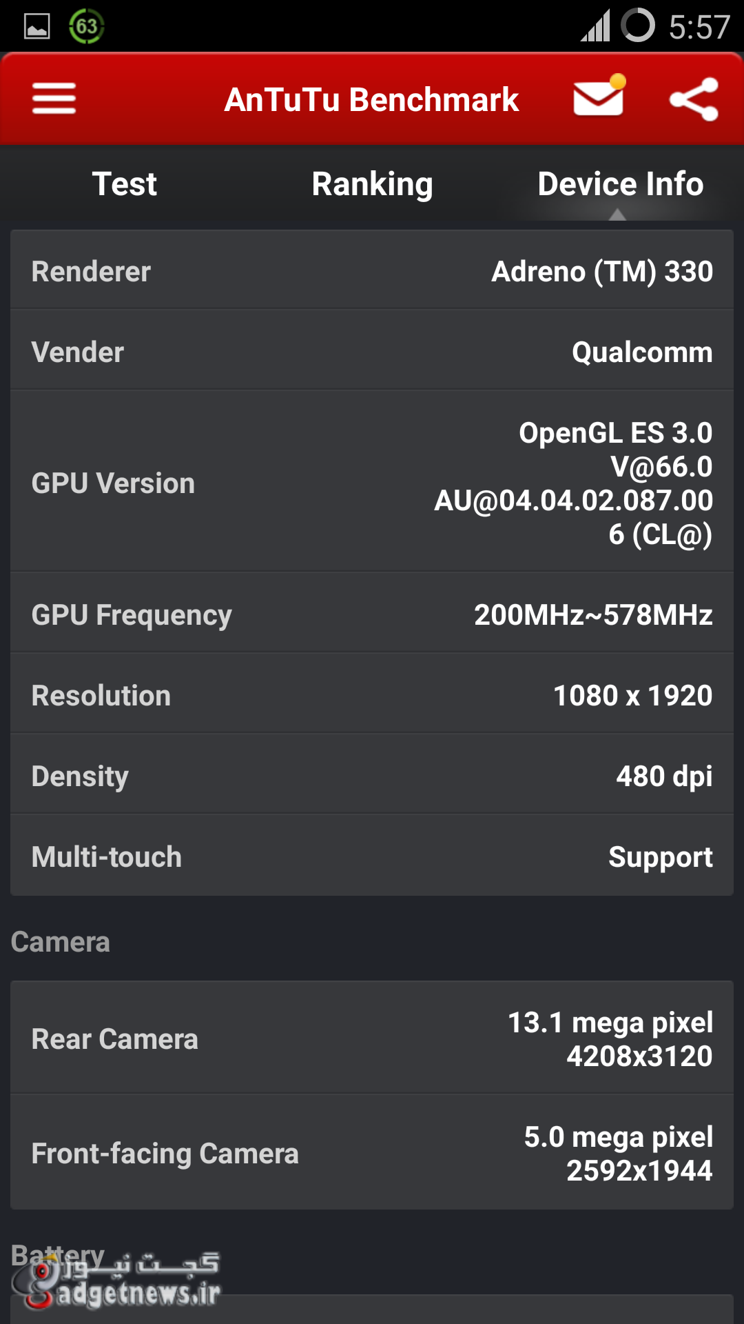 در تصویر زیر می توانید نتایج تست صفحه نمایش در زیر نور آفتاب را مشاهده نمایید.