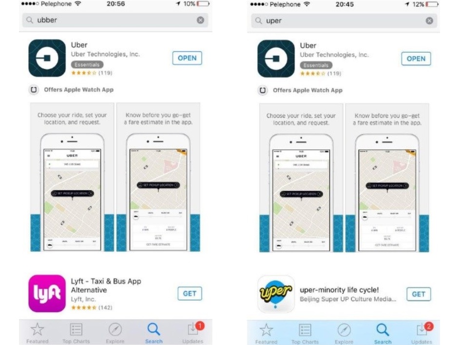 بهعنوان مثال اگر در جستوجوی اپلیکیشن Uber بوده و به اشتباه عبارت Ubber را تایپ کنید، علاوه بر نمایش اپلیکیشن Uber، نتایج دیگری همچون Lyft نیز برایتان به نمایش در میآیند. نکته جالب اینجاست که اگر بهجای Uber، کلمه Uper را جستوجو کنید، حتی اگر برنامهای با این نام در فروشگاه وجود داشته باشد، بازهم پایینتر از خود Uber قرار میگیرد. بدین ترتیب الگوریتم جستوجوی جدید اپاستور به فکر خواندن ذهن کاربران است. این نحوه جستوجو از 20 مارس در فروشگاه اپاستور مشاهده شده است؛ یعنی چند روز قبل از عرضه iOS 9.3. به همین دلیل، به اعتقاد الدان الگوریتم جستوجوی اپاستور در این نسخه بهصورت غیررسمی و مخفیانه تغییر کرده است.