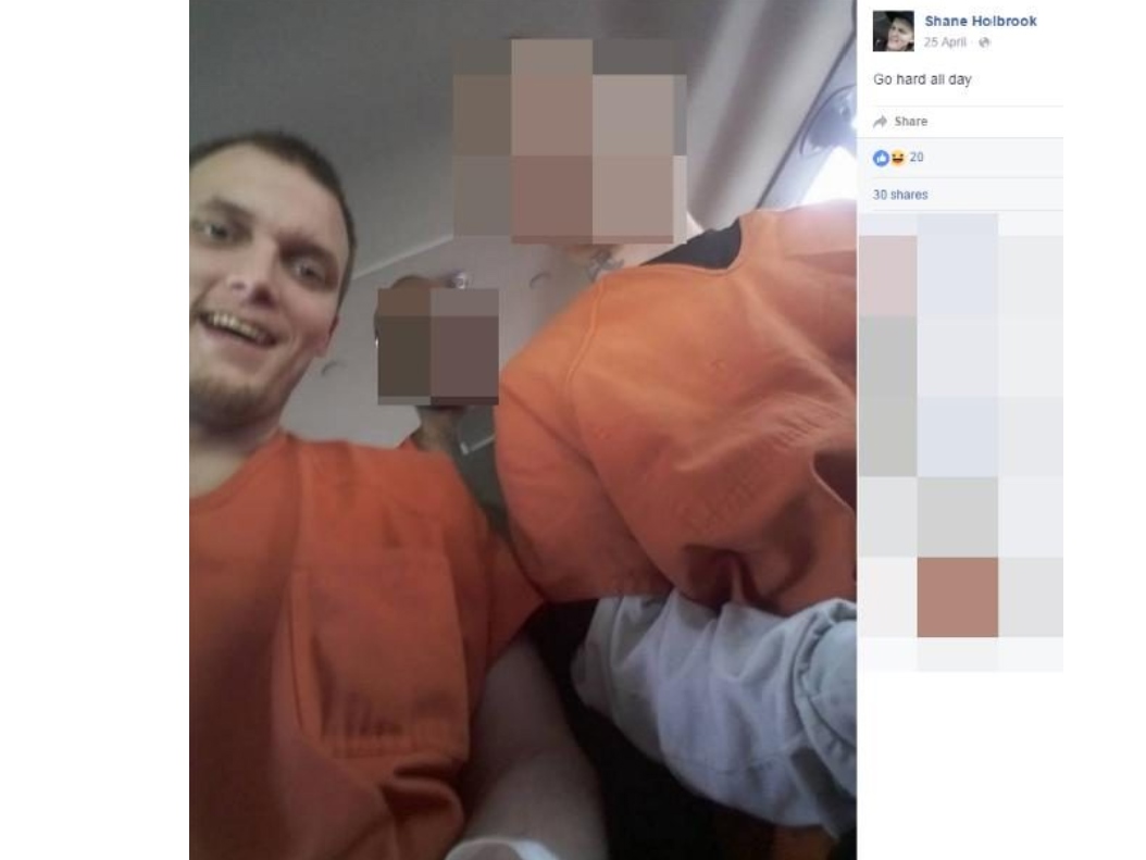 در این تصویر سلفی جنجالی، هولبروک به همراه چند زندانی دیگر درون ون و در حال بازگشت به زندان از دادگاه هستند. هولبروک در جلسه دادگاه خود تقاضای عفو کرده بود و این تقاضا توسط قاضی رد شد. او در پاسخ به سوالات خبرنگاران اعلام کرد که پس از رد شدن درخواست توسط قاضی، دیگر اهمیتی به رعایت کردن سایر ضوابط نمیداد.