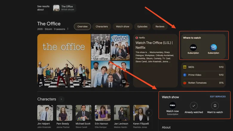 اگر دنبال دیدن یک فیلم یا سریال خاص هستید، نام آن را در گوگل وارد کنید. بخش «جایی برای تماشا» به شما نشان میدهد کدام سرویس پخش آنلاین آن را ارائه میدهد.