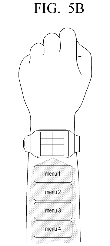 آیتمهای منو میتوانند بر روی درازای دست کاربران نمایش داده شود. در نهایت سنسورهای هوشمند دستگاه قادر هستند مکانی که کاربر بر روی منوی مجازی لمس میکند را تشخیص دهند. پتنت سامسونگ، کاربرد ساعتهای هوشمند آینده را به کارهای ساده بر روی دست کاربر محدود نمیکند. در این محصول تخیلی امکان نمایش یک دسکتاپ کامل و مجازی بر روی دیوار یا میز وجود دارد، آن هم با یک ساعت هوشمند کوچک! با این حال در پتنت درج شده است که چنین چیزی ممکن است بر روی گجتهایی که بر سر کاربران سوار میشوند، به کار گرفته شود. بهعنوانمثال هدستهای واقعیت مجازی یا هولولنزهای مایکروسافت.