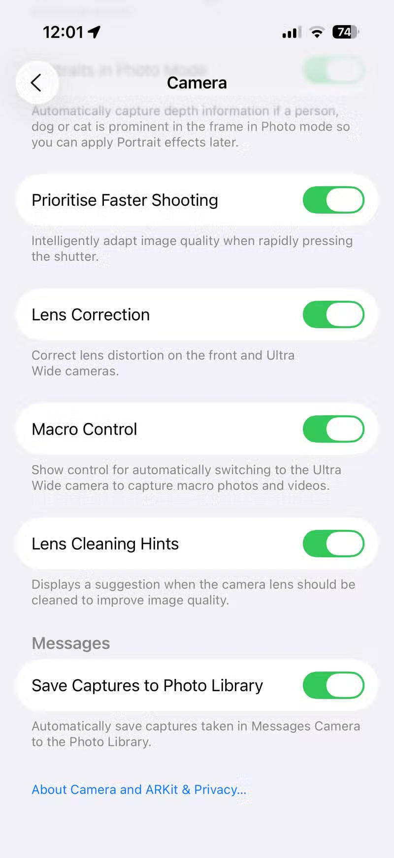 تمیز کردن لنز دوربین به راحتی در خاطر نمیماند، اما آیفون شما میتواند این کار را به شما یادآوری کند. اگر برنامه دوربین متوجه مهآلودگی یا نرمی غیرعادی در عکسهای شما شود، یک پیام ملایم برای تمیز کردن لنز نمایش میدهد. برای فعال کردن این ویژگی به Settings > Camera بروید و گزینه Lens Cleaning Hints را فعال کنید.