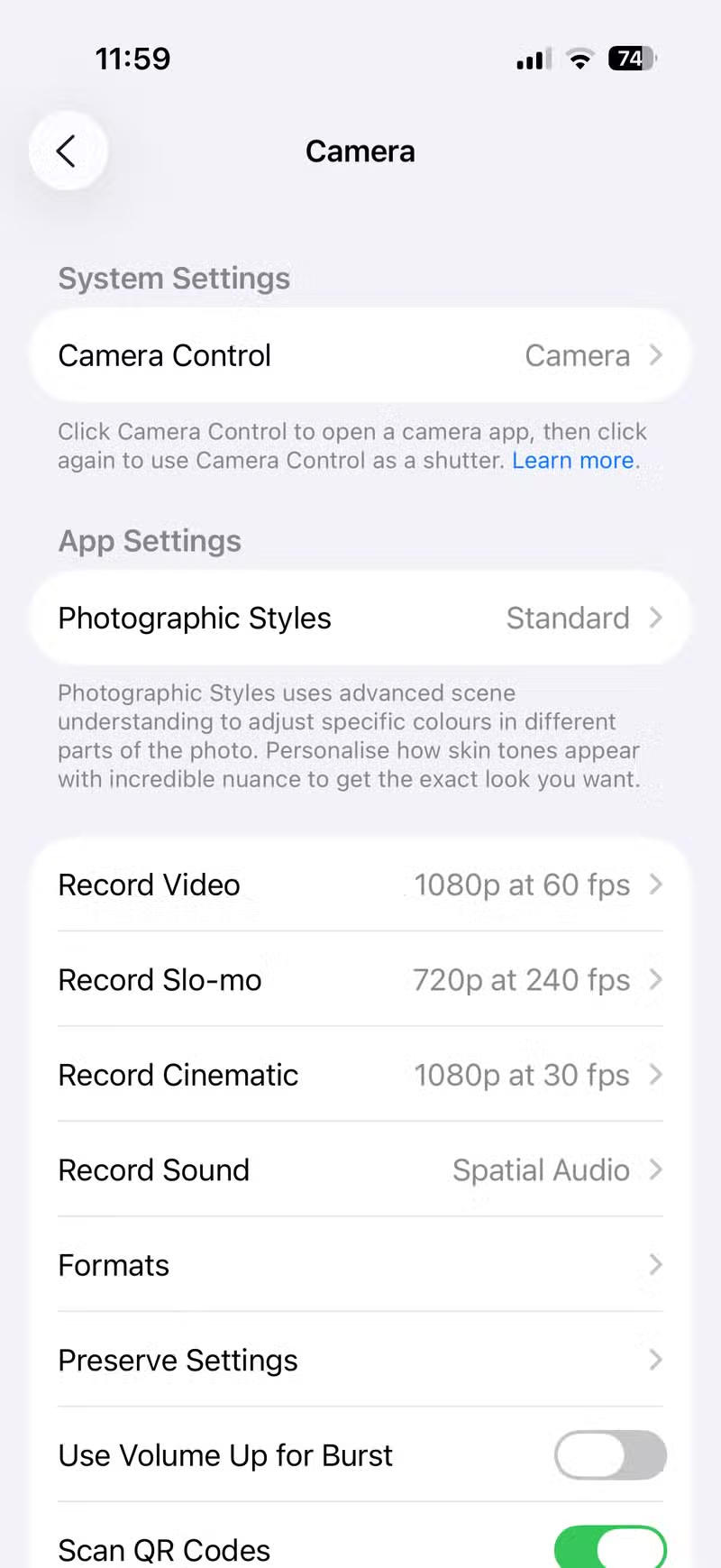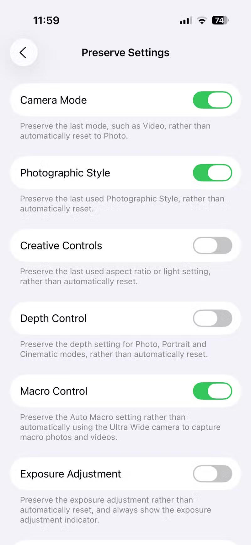برای تنظیم آن به Settings > Camera > Preserve Settings بروید. در آنجا گزینههای مختلفی مانند حالت دوربین سبک عکاسی و نوردهی را مشاهده خواهید کرد. گزینههایی را که میخواهید برنامه دوربین به خاطر بسپارد فعال کنید. این یکی از کاربردیترین ترفندهای دوربین آیفون برای صرفهجویی در وقت است.