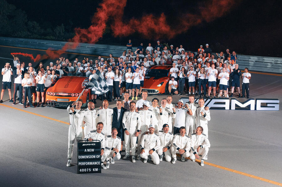 این رکوردها با استفاده از دو خودرو و تیمی متشکل از 17 راننده حرفهای از برنامه مسابقات GT3 مرسدس ای ام جی، و همچنین با حضور راننده فرمول 1، جرج راسل، حاصل شد. آنها در شیفتهای سهگانه کار میکردند و در هر نوبت هشت ساعته، پنج راننده حضور داشتند. تیم مهندسی و لجستیک کنار پیست، به علاوه یک تیم کنترل عملیات که راهبرد شارژ را از مقر مرسدس ای ام جی در آفالترباخ آلمان مدیریت میکرد. در طول برنامه هشت روزه مجموعاً بیش از 100 نفر پرسنل مشغول بودند.