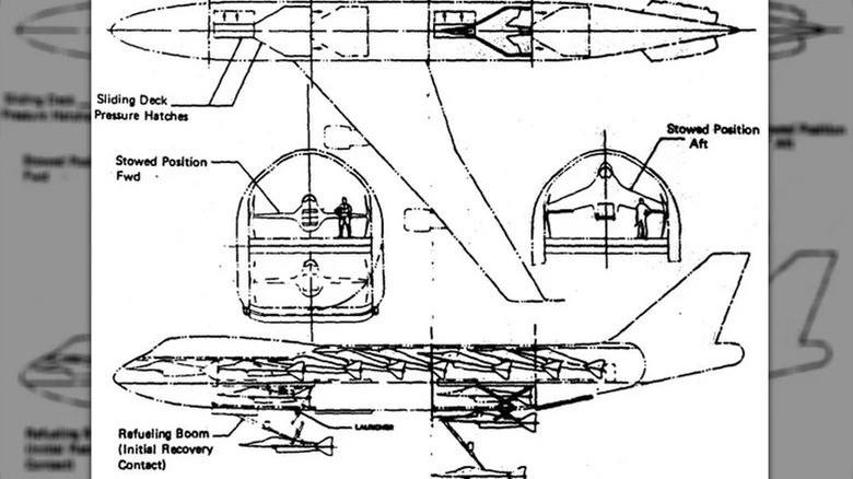 در اوایل دهه ۱۹۷۰، نیروی هوایی آمریکا طرح جاهطلبانهای برای تبدیل بوئینگ ۷۴۷ به یک ناو هواپیمابر پرنده ارائه کرد. این هواپیمای غولپیکر قرار بود ۱۰ جنگنده کوچک را در آسمان حمل، پرتاب و سوخترسانی کند.