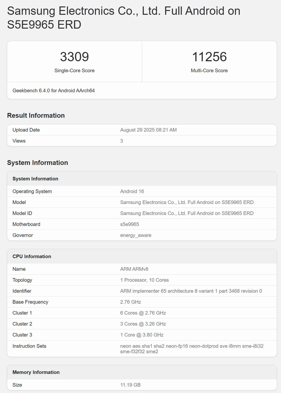 بر اساس اطلاعات فاش شده توسط کاربری در شبکه اجتماعی ایکس، تراشه اگزینوس ۲۶۰۰ موفق شده در آزمون تک هستهای گیکبنچ امتیاز ۳٬۳۰۹ و در آزمون چند هستهای امتیاز ۱۱٬۲۵۶ را کسب کند. این اعداد نشاندهنده یک جهش قابل توجه در توان پردازشی هستند و انتظارات از پرچمدار آینده سامسونگ را به شدت بالا میبرند.