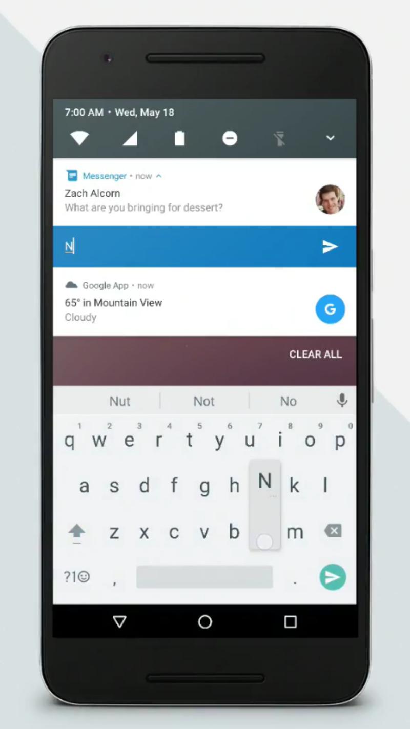ما شاهد بهبودهایی نیز در بخش نوتیفیکیشنها هستیم. همراه با سیستم عامل Android N ما قادر خواهیم بود تا بدون سوئیچ کردن اپلیکیشن از طریق نوتیفیکیشنها به پیامهای رسیده به دستمان پاسخ دهیم. این موجب میشود تا شما همزمان از چند اپلیکیشن استفاده کنید.