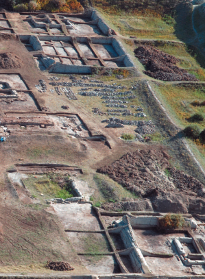 پروفسور هاینریش هارکه متخصص باستانشناسی اوایل قرون وسطی میگوید طرح این سایت شبیه به شهر ممنوعه امپراتوری چین است. تکنیکهای مورد استفاده در ساخت دیوار و سقف نیز یادآور معماری تشریفاتی سلسله تانگ چین است. این شواهد باعث شده بسیاری نتیجه بگیرند که شاید معماران و سازندگان چینی مستقیما در ساخت این مجموعه نقش داشتهاند.