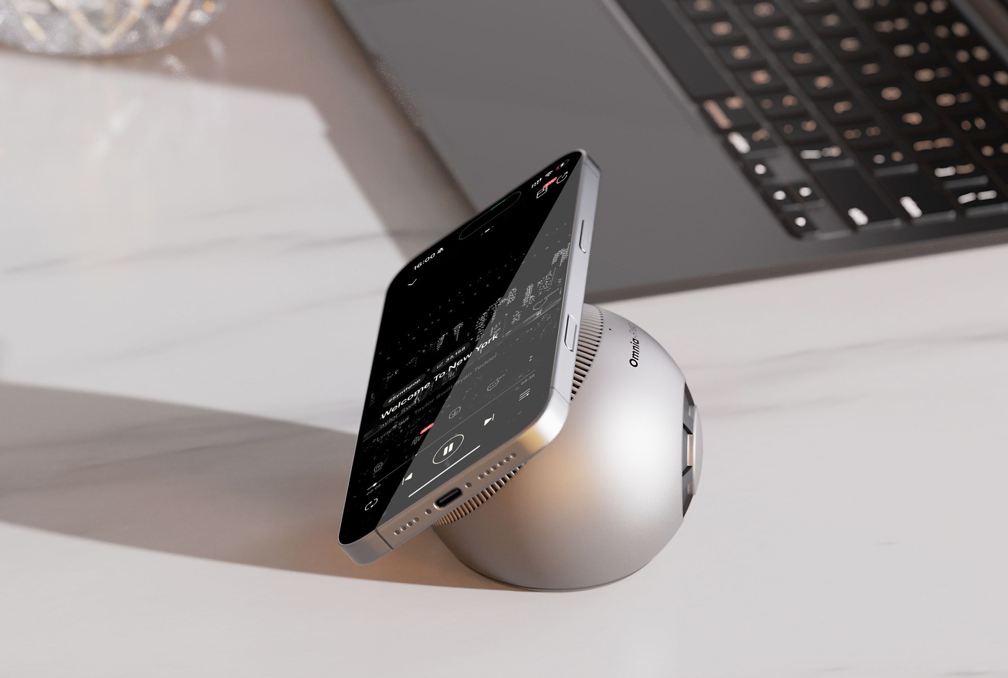 هر گوی علاوه بر پد شارژ بیسیم، به یک پورت USB-C با توان خروجی ۳۰ وات نیز مجهز شده است. شما میتوانید از این پورت برای شارژ سریعتر دستگاهها یا گجتهایی که از شارژ بیسیم پشتیبانی نمیکنند، استفاده کنید. حتی میتوانید گوی را به برق متصل کرده و از آن به عنوان یک استند شارژ رومیزی بهره ببرید.