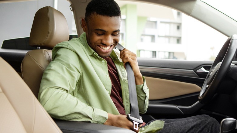 اگر کمربند ایمنی دکمه توقف نداشت، سگک میتوانست در تمام طول کمربند آزادانه حرکت کند. اگر کمربند بهصورت عمودی قرار بگیرد (مثل وقتی که آن را باز میکنید)، سگک بلافاصله به پایین میافتد و احتمالاً در فضای بین صندلی و در گیر میکند. بیرون آوردن آن هر بار دردسرساز است و اگر فراموش کنید قبل از حرکت کمربندتان را ببندید، دستکاری آن در حین رانندگی میتواند خطرناک باشد. پس از وجود این دکمه کوچک پلاستیکی خوشحال باشید و اگر روزی از کمربندتان جدا شد، فوراً یک جایگزین برای آن تهیه کنید.