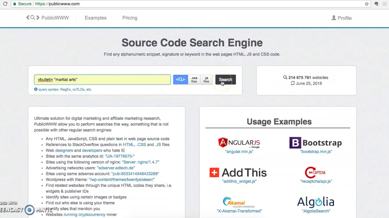 اگر میخواهید بدانید یک وبسایت محبوب چگونه ساخته شده و از چه فناوریهایی استفاده میکند، PublicWWW به شما امکان میدهد تا در ۴۷۷ میلیون صفحه وب بهطور همزمان جستجو کنید. این ابزار، صفحاتی مانند HTML، JavaScript و CSS را فهرست میکند.