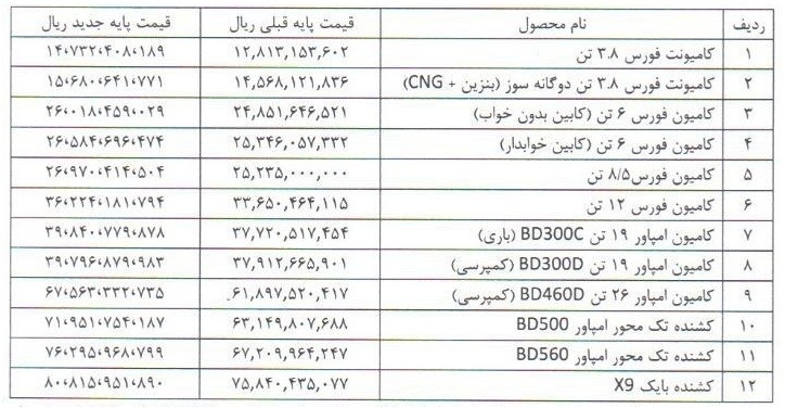 قیمت محصولات بهمن دیزل در مهر 1404 توسط این شرکت مشخص شد. جزئیات کامل نرخهای جدید و شرایط اجرای آنها را اینجا بخوانید.