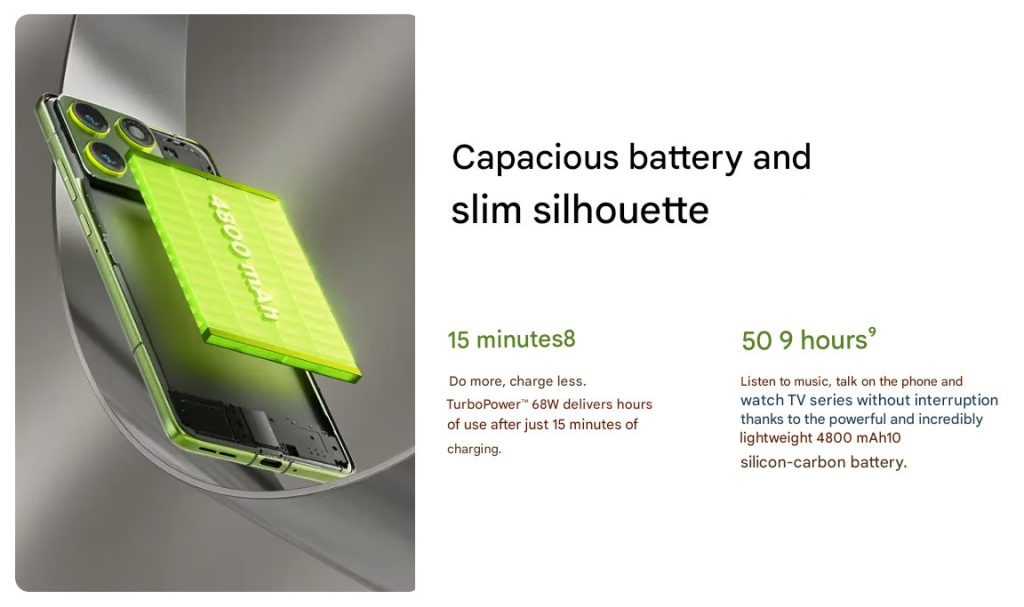 موتورولا Edge 70 از یک باتری ۴۸۰۰ میلیآمپرساعتی بهره میبرد که با پشتیبانی از شارژ سریع ۶۸ واتی TurboPower و شارژ بیسیم ۱۵ واتی همراه است. این ظرفیت باتری نسبت به اج ۶۰ کمتر است اما با توجه به ابعاد باریکتر گوشی، قابل توجیه بهنظر میرسد. این گوشی هوشمند قرار است در تاریخ ۵ نوامبر در اروپا معرفی شود و با نام موتو X70 ایر در اکتبر در چین عرضه خواهد شد و در سه رنگ سبز برنزی، خاکستری پنتون گجت و لیلی پد در دسترس خواهد بود.