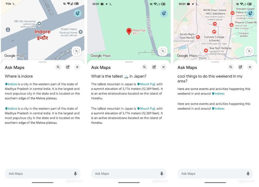 با ضربه زدن روی این چیپ، یک پوشش به سبک Gemini در گوگل مپس ظاهر میشود که به شما امکان میدهد با تایپ یا استفاده از صدای خود، هرگونه پرسش مرتبط با ناوبری را مطرح کنید. به عنوان مثال، در یکی از اسکرینشاتهای Android Authority، کاربر میپرسد بلندترین کوه ژاپن چیست؟ و برنامه پاسخی با هوش مصنوعی تولید میکند، در حالی که همزمان رابط نقشه را به مختصات دقیق کوه فوجی منتقل مینماید. این قابلیت به کاربران کمک میکند تا اطلاعات دقیق و لحظهای را بدون نیاز به جابجایی بین چندین برنامه به دست آورند.