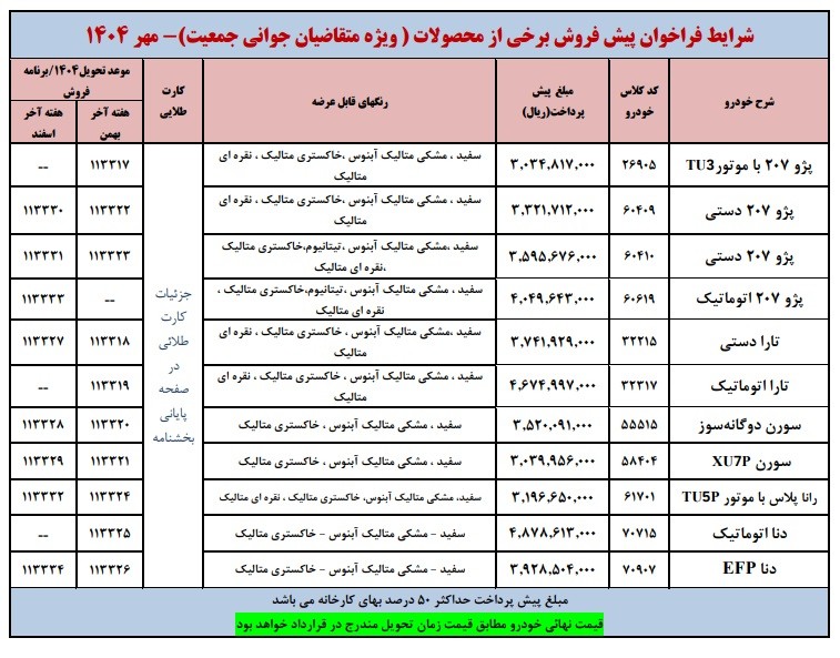 فراخوان کنونی بر اساس بندهای ۷ و ۸ بخش تذکرات مهم اطلاعیه هشتمین دوره ثبت درخواست خرید خودرو، منتشر شده در سایت شرکت ایران خودرو، انجام میشود. جزئیات مربوط به نوع خودرو، زمان تحویل، برنامه فروش و قیمتها طبق جدول ارائهشده توسط شرکت، اطلاعرسانی خواهد شد.