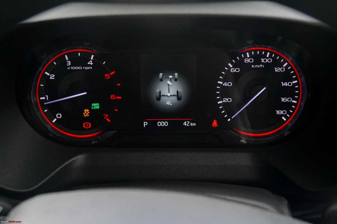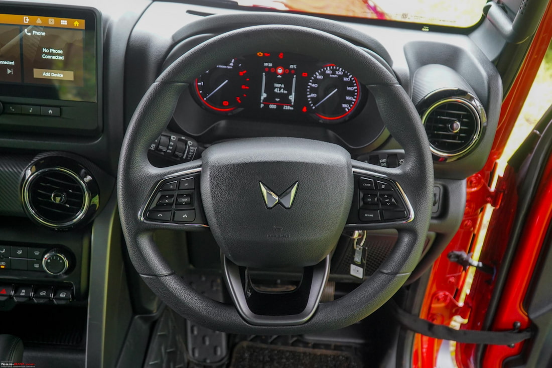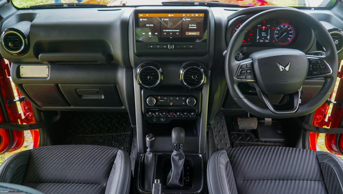 این ارتقای دیجیتالی با نصب یک نمایشگر لمسی بزرگتر ۱۰.۲۵ اینچی با وضوح بالا که بهطور مرکزی در بخش بالایی داشبورد تعبیه شده، تکمیل میشود و بهصورت محور اصلی تعامل کابین با سرنشینان عمل میکند. این نمایشگر پیشرفته به نسل دوم سیستم منحصربهفرد «آمار ماجراجویی» ماهیندرا مجهز شده است، که نه تنها قابلیتهای استاندارد سرگرمی و ناوبری را پوشش میدهد، بلکه در سفرهای آفرود، اطلاعاتی نظیر زاویه شیب طولی و زاویه شیب عرضی را به راننده ارائه میدهد. با این وجود چیدمان کلی داشبورد و بهطور خاص محل قرارگیری کلیدهای کنترل شیشهبالابر برقی درها، تفاوت ساختاری آشکاری با طراحی داخلی نمادین جیپ رانگلر دارد.