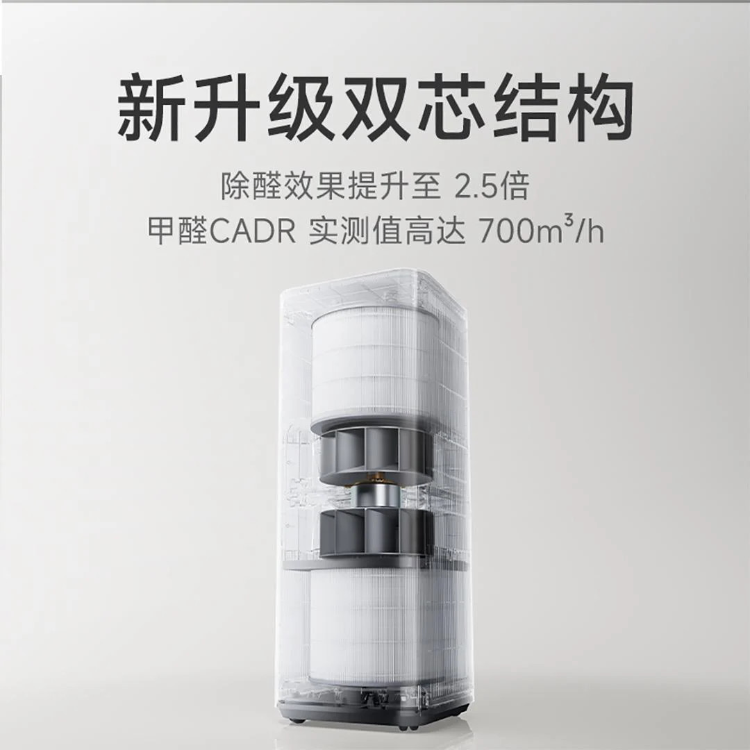 دستگاه تصفیه هوای شیائومی Mijia Air Purifier 6 Dual-Core، با سیستم دو هستهای (دو فیلتر و دو فن)، برای حذف فرمالدئید و ترکیبات آلی فرار در خانههای جدید طراحی شده است. این دستگاه CADR فرمالدئید ۷۰۰ و ذرات ۹۴۹ متر مکعب بر ساعت داشته و فضایی تا ۹۶ متر مربع را پوشش میدهد. فیلتر هفتلایه آن ۹۹ درصد فرمالدئید، ۹۹.۹۹ درصد ویروس H1N1 و بیش از ۹۸ درصد آلرژنها را حذف میکند.