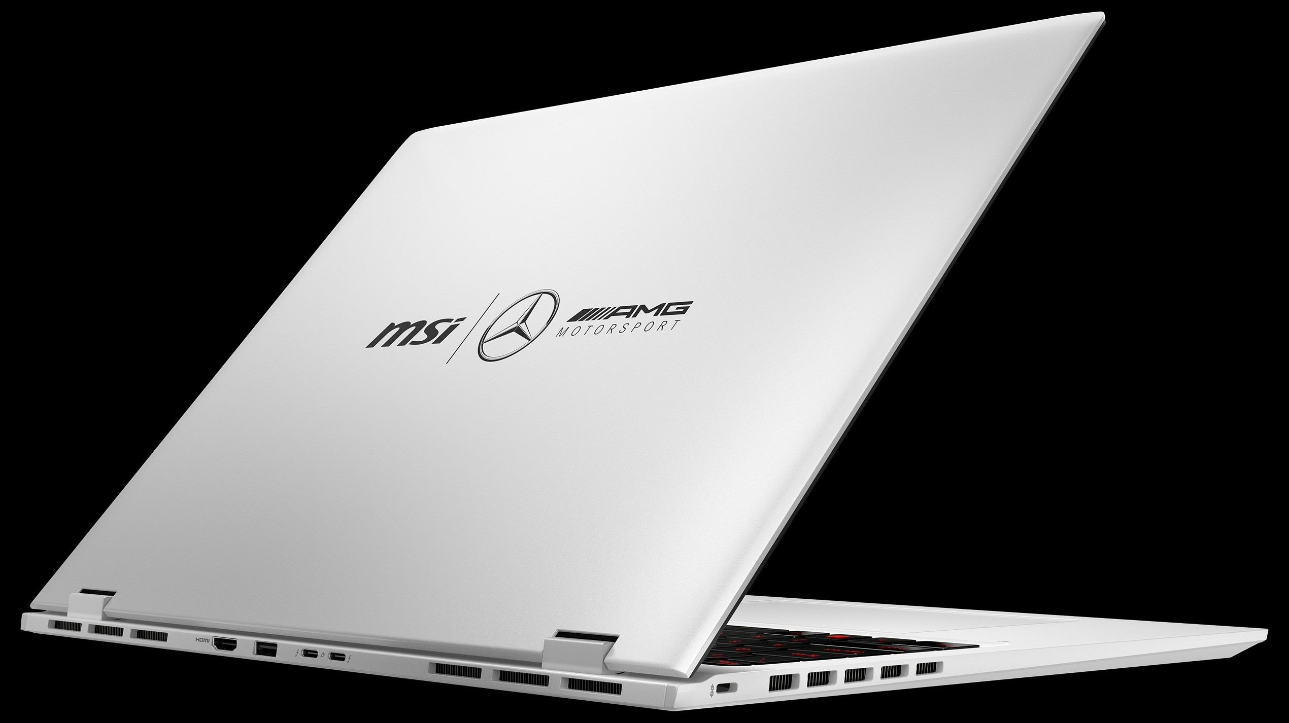 لپتاپ MSI Prestige 16 AI+ Mercedes-AMG Motorsport Edition (B2VMG-209) اولین لپتاپ تجاری اماسآی است که با همکاری مرسدس-آامگ ساخته شده است. این دستگاه با وزن ۱٫۵ کیلوگرم و ضخامت کمتر از ۱۹ میلیمتر، از شاسی آلیاژ منیزیم-آلومینیوم بهره میبرد و طراحی آن شامل رنگهای خاکستری و نقرهای با لهجههای قرمز و لوگوهای حکاکیشده AMG Motorsport است.