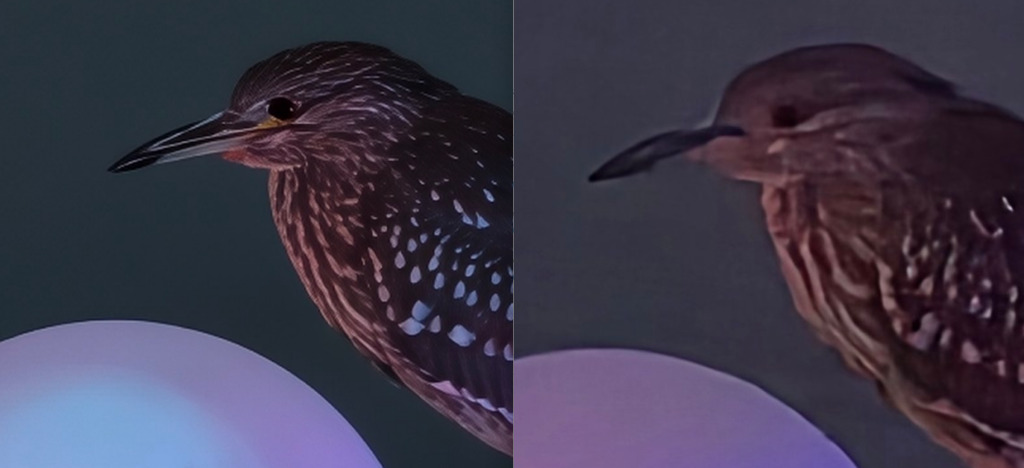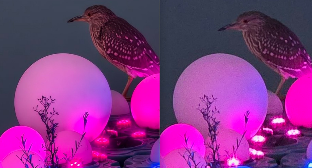 به گفته افشاگر معروف، Ice Universe، نمونه تصاویر گرفته شده با زوم 10 و 35 برابری در شرایط نوری ضعیف نشان میدهد که سیستم زوم ویوو حفظ در جزئیات و کاهش نویز عملکرد بهتری دارد. در زوم 10 برابری، هر دو تصویر از نظر رنگ نزدیک به یکدیگر هستند. نکته جالب اینجاست که ایکس 300 پرو جزئیات را بسیار دقیق حفظ میکند. در مقابل، عکس گرفته شده با گلکسی اس 25 اولترا دچار نویز و افت جزئیات میشود. در زوم 35 برابری نیز برتری ویوو کاملا مشهود است.