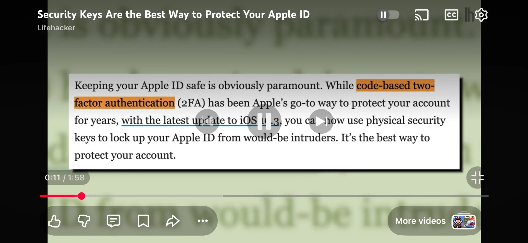 همچنین، انیمیشنهای جدیدی برای جستوجو در ویدیو و تعامل با دکمه لایک اضافه شده است. هنگام دو بار ضربه زدن روی صفحه برای جلو یا عقب بردن ۱۰ ثانیه، یک علامت بزرگ «-۱۰» یا «+۱۰» نمایش داده میشود.
