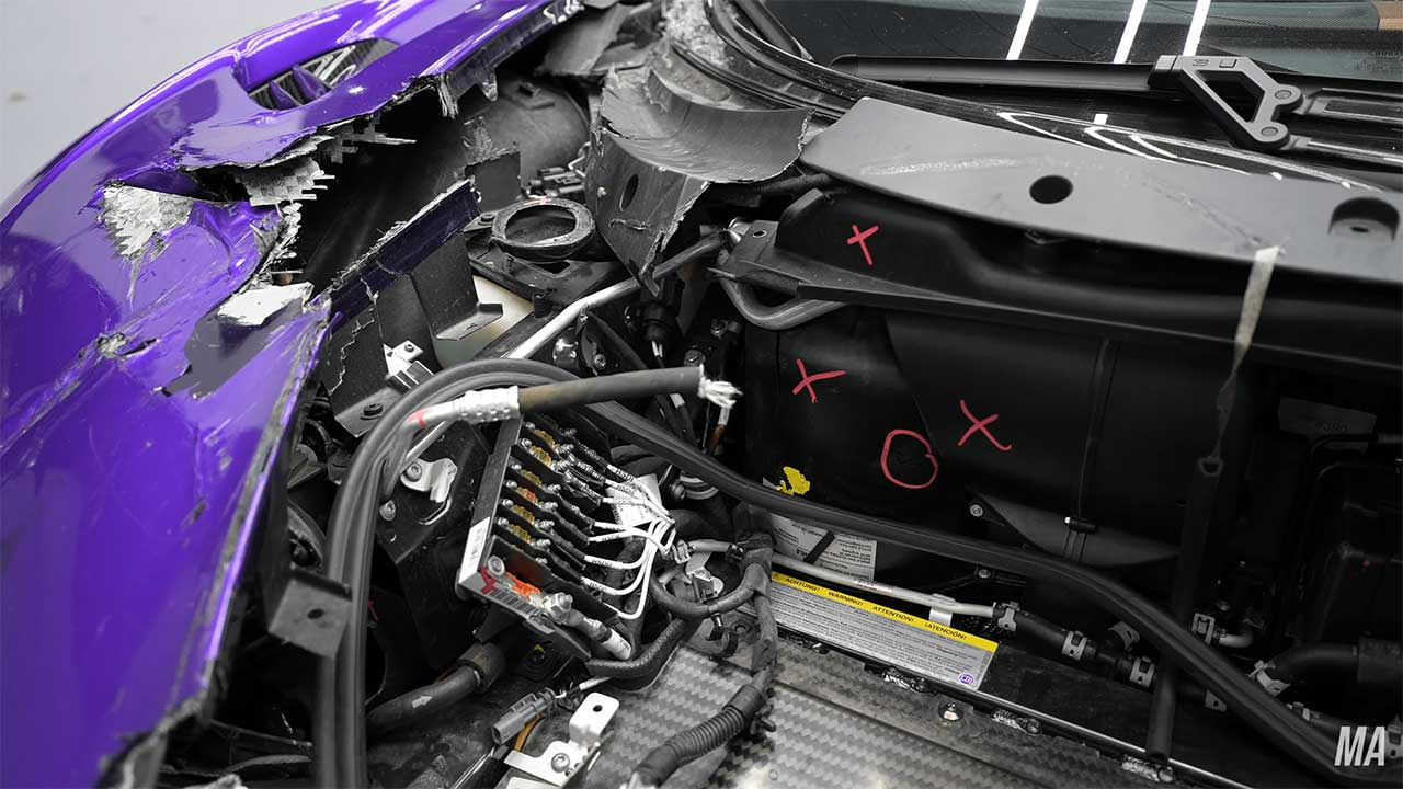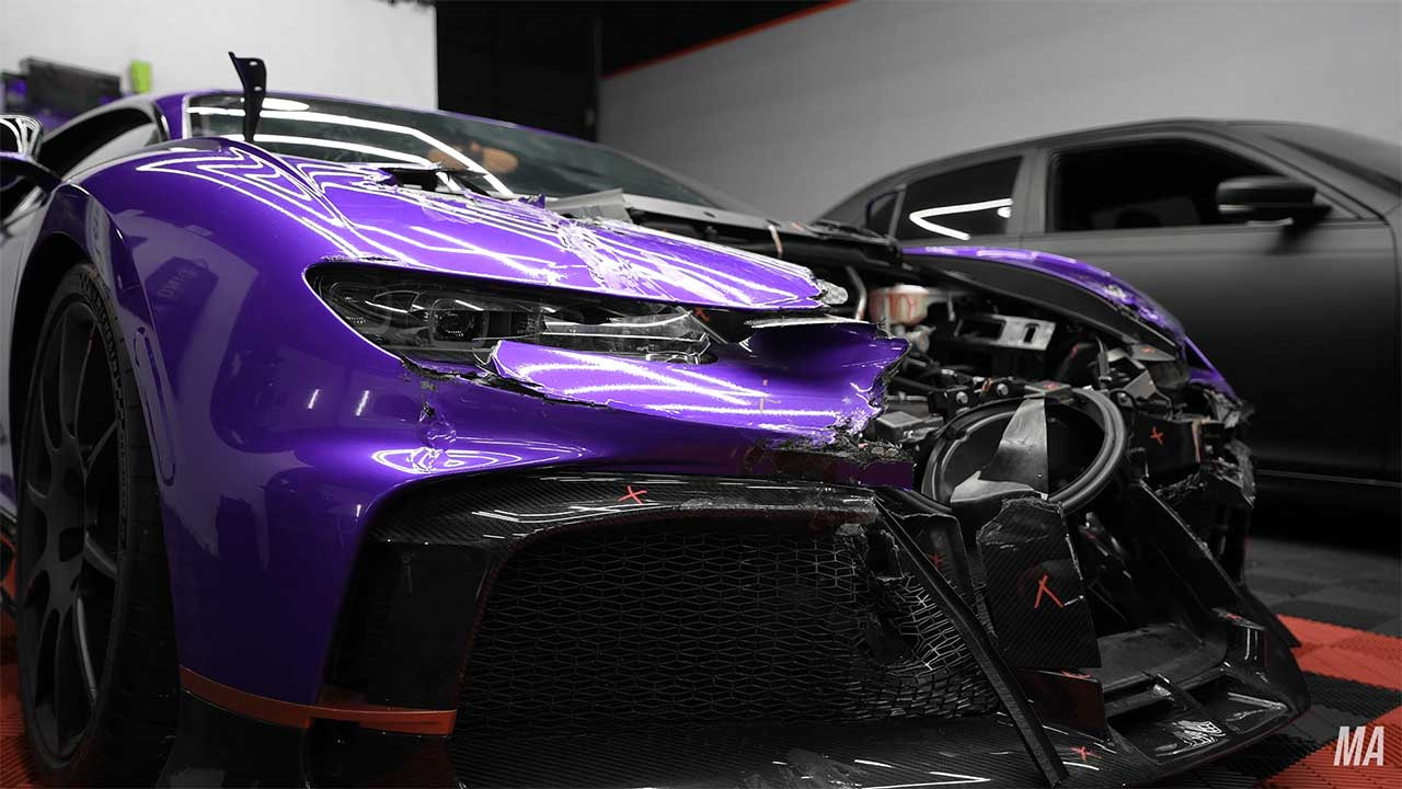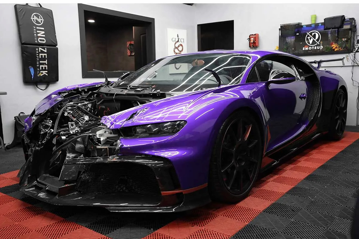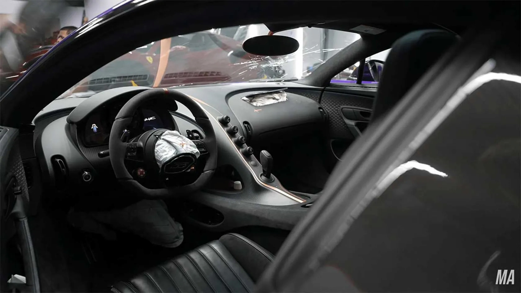 در تصادفی عجیب، این هایپرکار چهار میلیون دلاری با یک وانت کوچک ژاپنی برخورد میکند و بخشی از دماغه خودرو بهطور جدی آسیب میبیند. آرمسترانگ که برای ارزیابی خسارت پروژه بازسازی به میامی رفته بود، با فهرستی از قیمت قطعات روبهرو شد که خود او نیز بهسختی باور میکرد. هر جفت چراغ جلو این شیرون پور اسپرت، ۱۵۰ هزار یورو قیمت دارد. هر چراغ شامل دهها ماژول LED با بالاترین دقت در زاویهپرتاب، سیستم هوشمند تنظیم نور در سرعتهای بالا و ساخت حجمی از فیبرکربن سبکوزن است که در کارخانه مولشایم فرانسه با مونتاژ دستی انجام میشود.