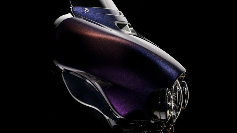 آپشن رنگآمیزی میستیک شیفت (Mystic Shift) هارلی دیویدسون با ذرات فلزی، رنگ را از خاکستری تیره به نارنجی، آبی و بنفش تغییر میدهد. این آپشن ۲,۰۰۰ تا ۳,۰۰۰ دلار اضافی هزینه دارد.