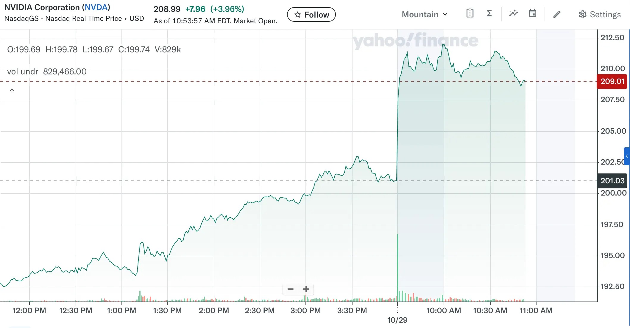 سهام انویدیا در روز چهارشنبه (۲۹ اکتبر ۲۰۲۵) تا ۵ درصد افزایش یافت و به بیش از ۲۱۱ دلار رسید. این جهش چشمگیر در حالی رخ میدهد که شرکت تنها در ماه ژوئیه از مرز ۴ تریلیون دلار عبور کرده بود. با این حرکت، انویدیا از شرکتهایی چون اپل که با ۴ تریلیون دلار ارزش بازار در رده بعدی قرار دارد، پیشی گرفت. پس از اپل، شرکتهایی مانند مایکروسافت، آلفابت (شرکت مادر گوگل)، آمازون و متا قرار دارند.