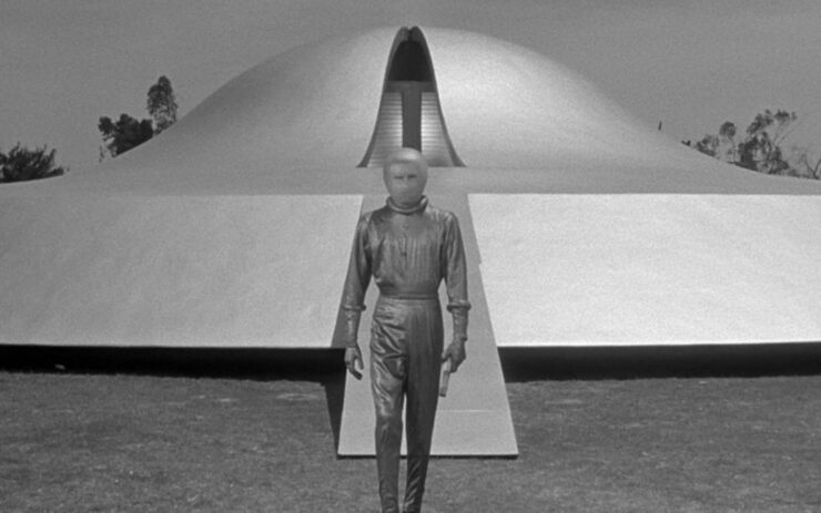 این شاهکار علمی-تخیلی، داستان ملاقاتکنندهای مرموز به نام کلاتو و ربات قدرتمندش را روایت میکند که به رهبران زمین هشدار میدهند: یا انرژی اتمی را مسئولانه استفاده کنید یا با نابودی روبهرو شوید. این فیلم بازتابی از واقعیت جدید پس از جنگ جهانی دوم و ترسهای دوران خود بود.