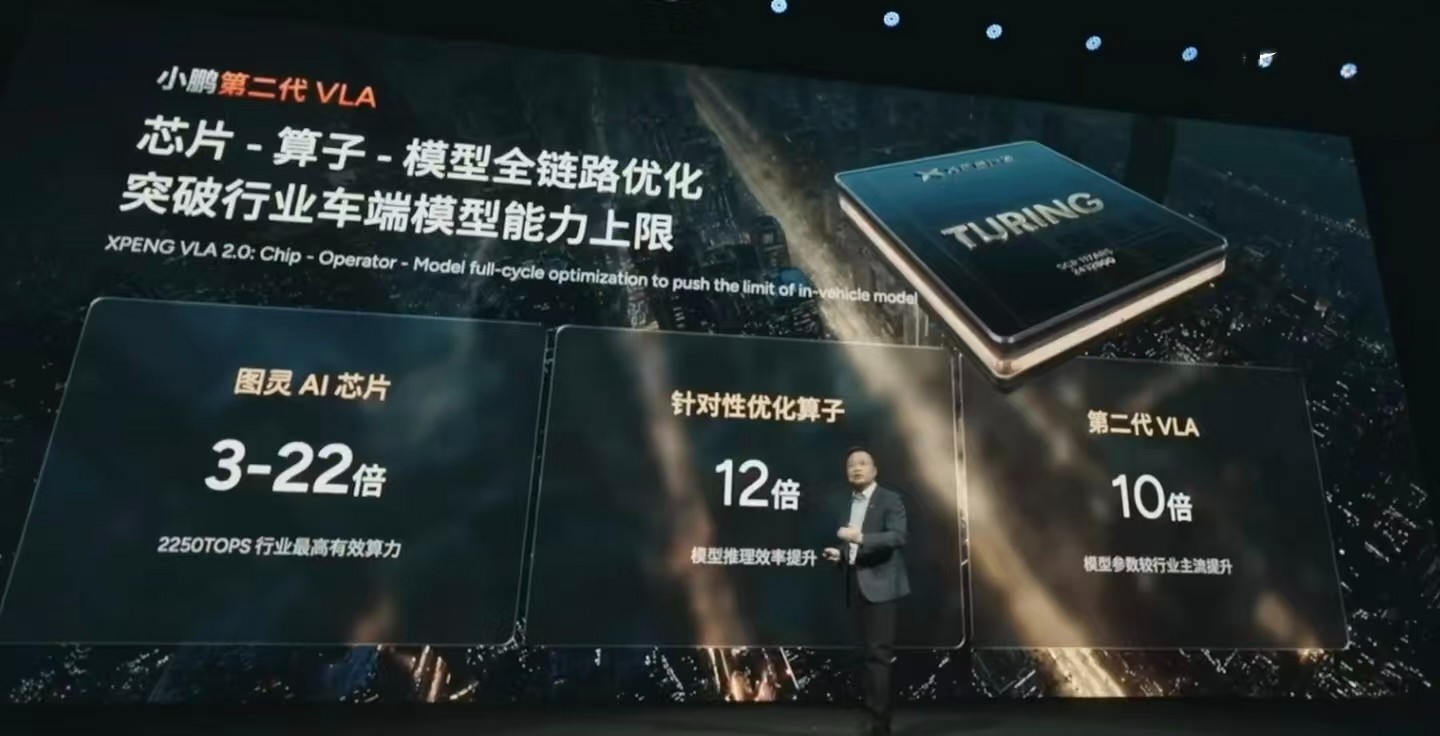 سیستم هوش مصنوعی Xpeng VLA 2.0، زیربنای محاسباتی برای نسل بعدی حملونقل هوشمند این شرکت است که شامل وسایل نقلیه، ربوکارها، سیستمهای رباتاکسی و خودروهای پرنده میشود. این مدل با معماری ۷۲۰ میلیارد پارامتری کار میکند و هر پنج روز یکبار بهطور کامل بهروزرسانی میشود. پلتفرم تراشه تورینگ هسته اصلی این سیستم رانندگی خودران را تشکیل میدهد.