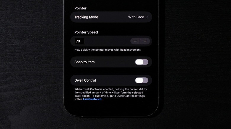 این قابلیت از دوربین سلفی گوشی استفاده میکند؛ بنابراین، برای عملکرد بهینه، محیطی با نور کافی و تمیز بودن لنز دوربین ضروری است. پس از فعالسازی، یک نشانگر روی صفحه ظاهر میشود و آیتمهای منو با حرکت سر شما برجسته خواهند شد. همچنین، قابلیت Dwell Control بهطور پیشفرض فعال است که با ثابت نگه داشتن سر روی یک گزینه برای مدتی کوتاه، آن را بهطور خودکار انتخاب میکند.