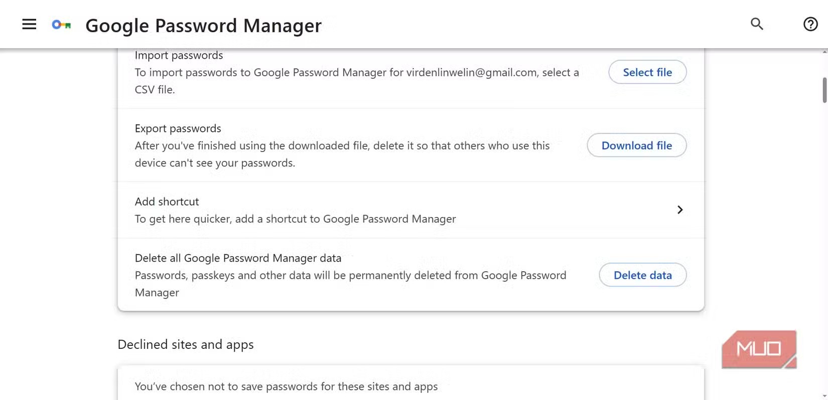 - به Settings بروید و در بخش Export Passwords، گزینه Download file را انتخاب کنید.