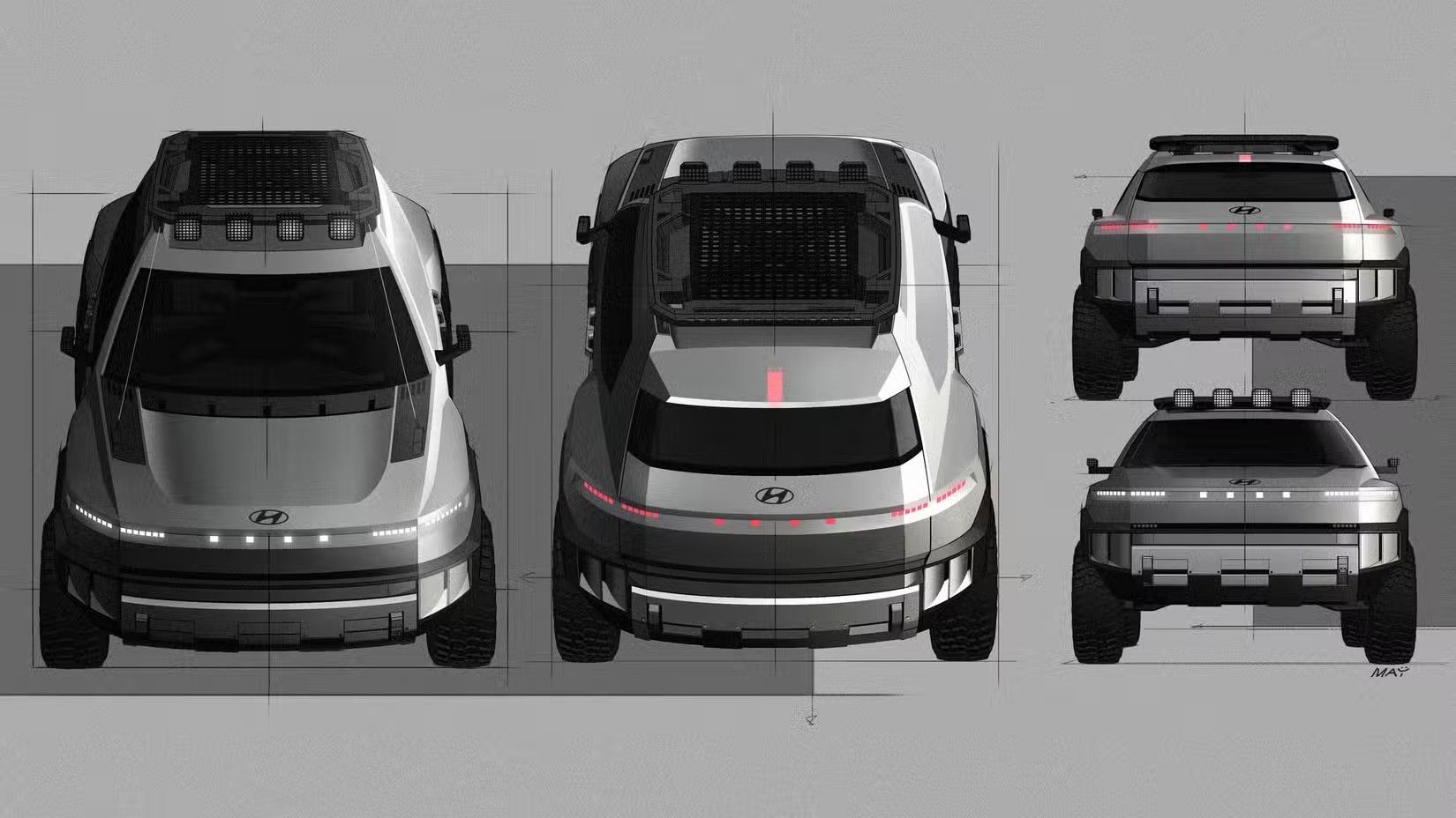 طراحی جعبهایشکل Crater هیوندای با چراغهای پیکسلی خاص این برند، گلگیرهای برجسته و باربند سقفی شیک با چراغهای مه شکن کمکی، بسیار چشمگیر است. شیشه جلوی شیبدار نیز افزودنی جالب به طراحی این خودرو است. هیوندای Motor America (HATCI) در ایروین، کالیفرنیا، اعلام کرده که طراحی این خودرو از «محیطهای افراطی» الهام گرفته شده است.