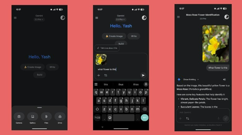 گوگل جمینای میتواند به صورت لحظهای آنچه را که میبینید تحلیل کند و به عنوان یک دستیار واقعی عمل نماید. این ویژگی برای شناسایی اشیا مانند گیاهان یا اجزای سختافزاری، خواندن علائم، رمزگشایی برچسبها یا ترجمه متون در سفر بسیار کاربردی است. کافی است برنامه جمینای را باز کرده، روی دکمه «+» ضربه زده و گزینه «دوربین» را انتخاب کنید. سپس دوربین را به سمت شیء یا متن مورد نظر بگیرید، عکس بگیرید و پرسش خود را مطرح کنید تا جمینای پاسخ مناسب را ارائه دهد.