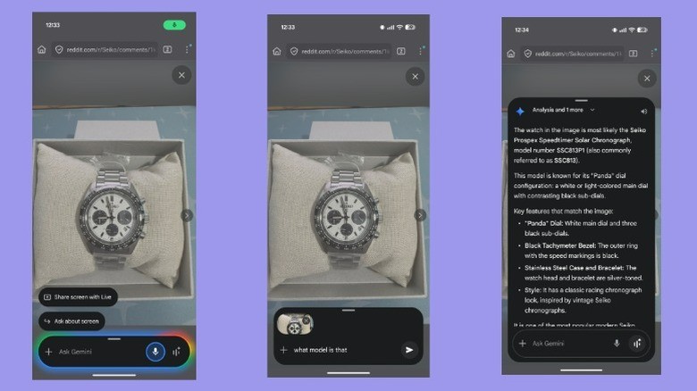 به جای گرفتن اسکرینشات و آپلود دستی، گوگل جمینای امکان جستجو و تحلیل مستقیم محتوای نمایش داده شده روی صفحه گوشی را فراهم میآورد. این قابلیت برای درک مشخصات محصولات در وبسایتهای فروشگاهی، شفافسازی دادههای مقالات یا یافتن و خرید یک کالا بسیار مفید است.