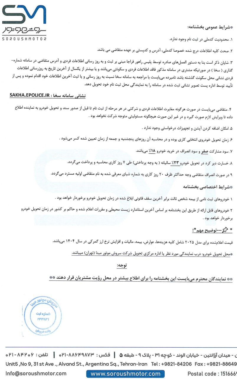 - شرایط فروش وویا فری مدل 2025 سروش موتور – آبان 1404