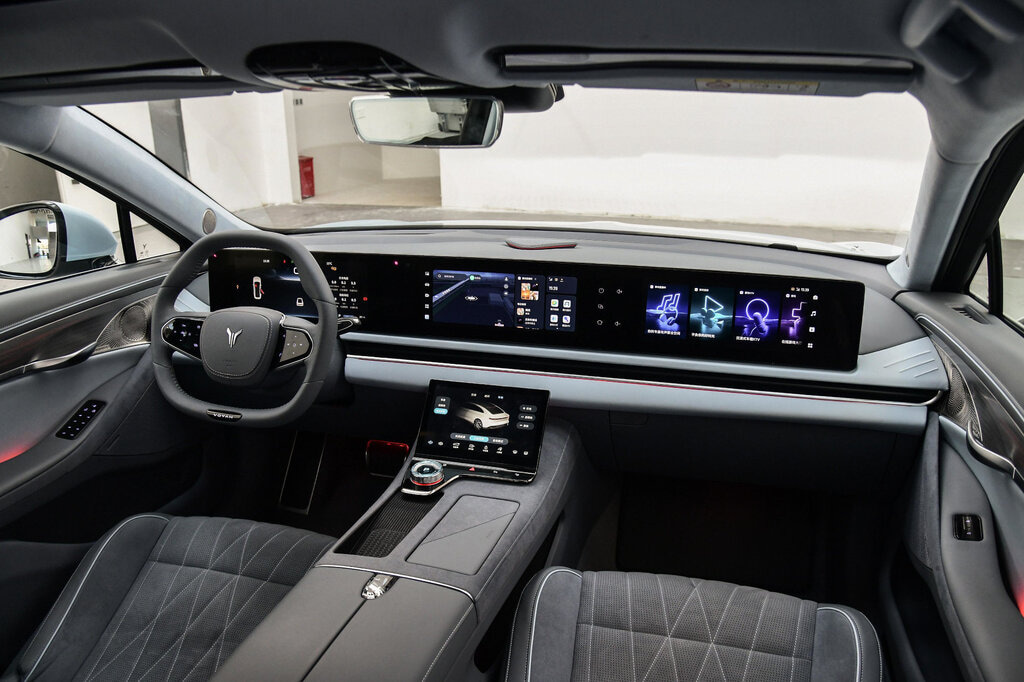 کابین وویا پشن همانند دیگر محصولات این برند، زبان طراحی مدرن، مینیمال و در عین حال لوکس را به شکلی هوشمندانه در خود جای داده است. ترکیب سه صفحهنمایش بزرگ در بخش جلو، شامل کلاستر تمام دیجیتال مقابل راننده، نمایشگر مرکزی سیستم چندرسانهای و یک نمایشگر مجزا در برابر سرنشین کناری تجربهای فناورانه و یکپارچه را ایجاد میکند که حس آیندهنگر بودن خودرو را به وضوح القا میکند.