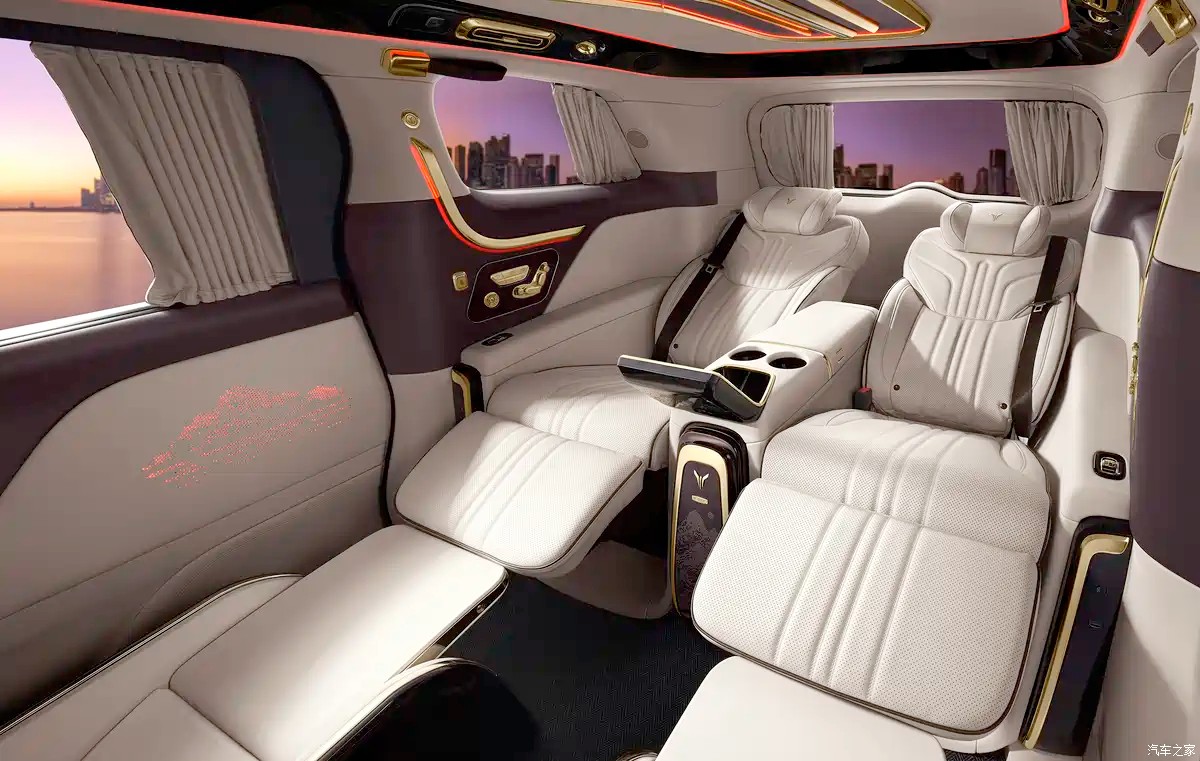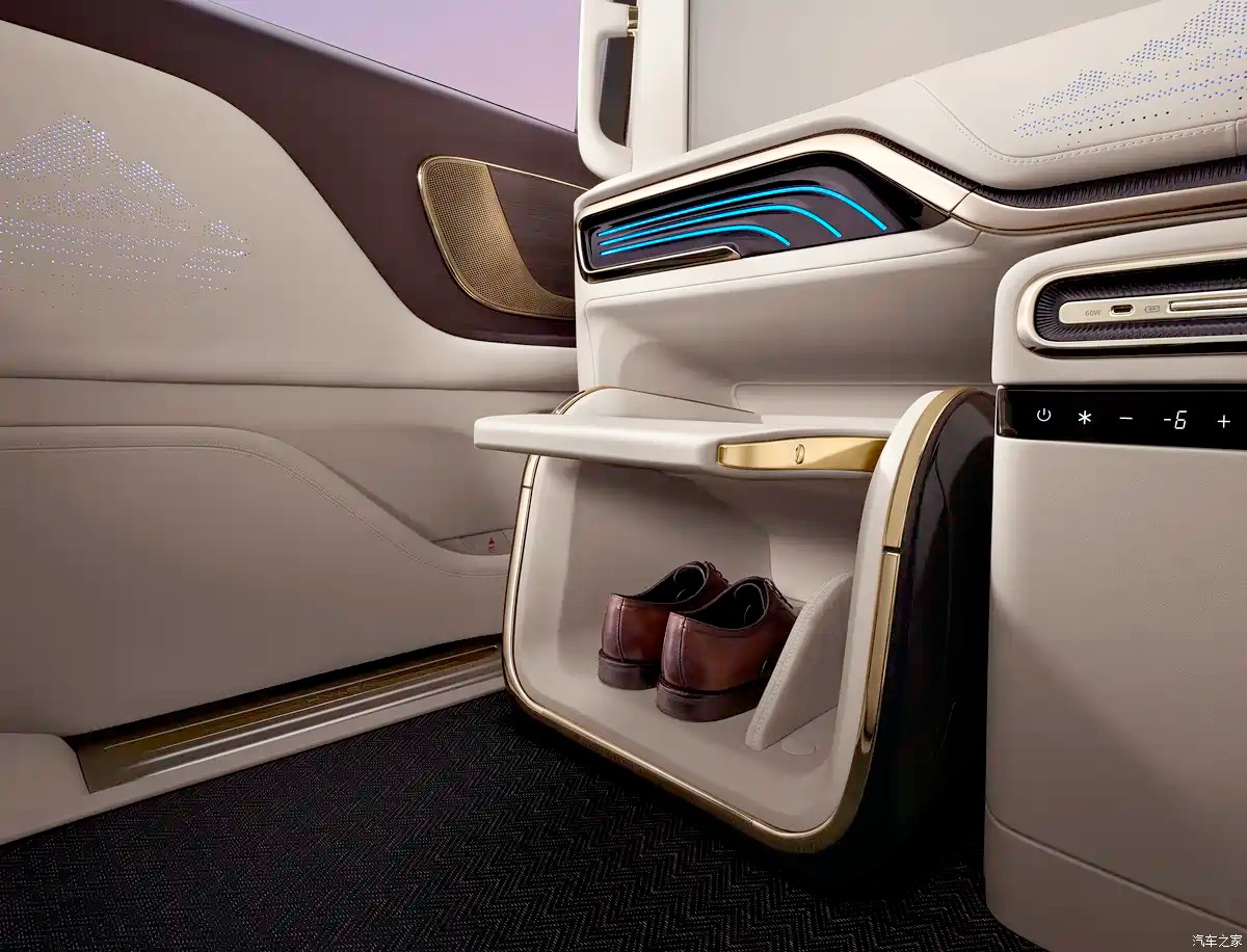 امکانات لوکس دیگر این MPV شامل فضای ذخیرهسازی کفش برقی، زیرپاییهای گرم هوشمند، چتر کلکسیونی و یخچال هوشمند دوگانه میشود.