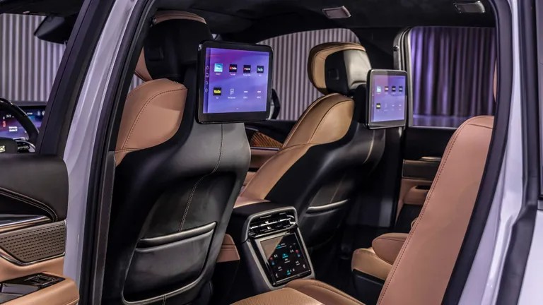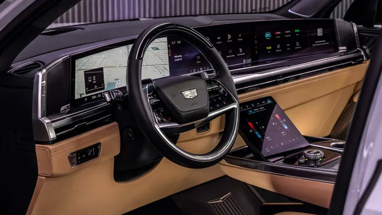 کابین داخلی با سیستم صوتی ۳۸ بلندگوی AKG Studio Reference فضایی آرام و دلپذیر را ایجاد میکند. صندلیهای جلو دارای گرمکن، سردکن و ماساژور هستند و ردیفهای دوم و سوم نیز برای بزرگسالان راحت طراحی شدهاند. نمایشگر سرنشین جلویی یکی از کاربردیترین ویژگیهاست که امکان تماشای ویدیو، وبگردی و دسترسی به ناوبری را فراهم میکند. سیستم کمکراننده پیشرفته Super Cruise جنرال موتورز نیز در این خودرو تعبیه شده است که اکنون قابلیت استفاده در جادههای دو لاین نقشهبرداریشده را علاوه بر بزرگراهها دارد.