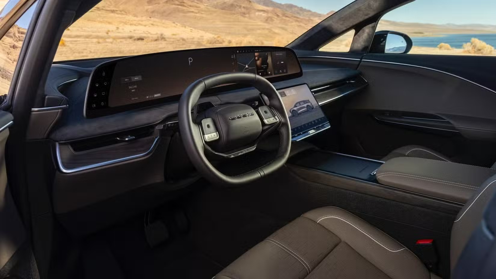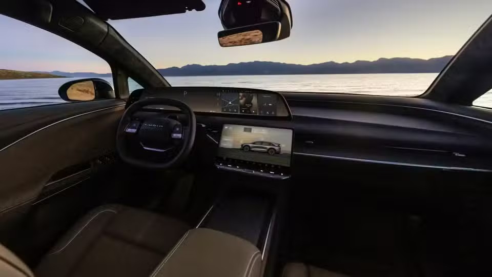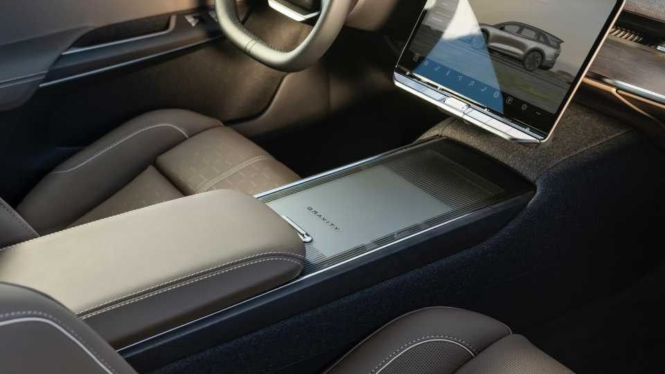 در بخش طراحی و امکانات داخلی، لوسید گراویتی تورینگ ۲۰۲۶ تفاوت کمی با مدل گرانتر خود دارد. کنسول مرکزی با پوشش شیشهای مات و مواد باکیفیت شامل تریم پارچهای و گزینههای روکش چرم مصنوعی یا طبیعی، حس لوکس بودن را حفظ کرده است. یک نمایشگر خمیده ۳۴ اینچی OLED برای کلاستر و پنل اطلاعات، در کنار یک صفحه نمایش لمسی ۱۲.۶ اینچی برای سرگرمی، فضای کابین را مدرن نشان میدهد. فضای سرنشینان بدون تغییر باقی مانده و ردیف سوم صندلیهای اختیاری نیز جادار است. ظرفیت بار در مدل ۵ نفره تا ۳۳۹۸ لیتر (۱۲۰ فوت مکعب) و در مدل ۷ نفره با احتساب فضای ۲۲۹ لیتری (۸.۱ فوت مکعب) در قسمت جلو، به ۳۲۳۷ لیتر (۱۱۴.۳ فوت مکعب) میرسد.