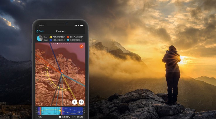 PhotoPills رقیب SunSurveyor بوده و امکانات مشابهی را ارائه میدهد. این برنامه با استفاده از نقشه، زوایای تابش نور خورشید و ماه را در زمانهای مختلف نشان میدهد تا بتوانید عکاسی خود را برنامهریزی کنید. PhotoPills همچنین زمان طلوع و غروب، ساعات طلایی و آبی، تقویم ماه و حتی موقعیت ستارگان را برای عکاسی نجومی نمایش میدهد. قیمت آن در گوگل پلی ۱۰٫۹۹ دلار است.