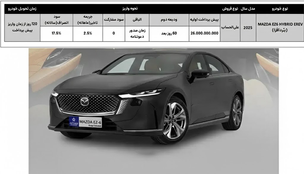 جزئیات فروش مزدا EZ-6 هیبرید در آذر ۱۴۰۴