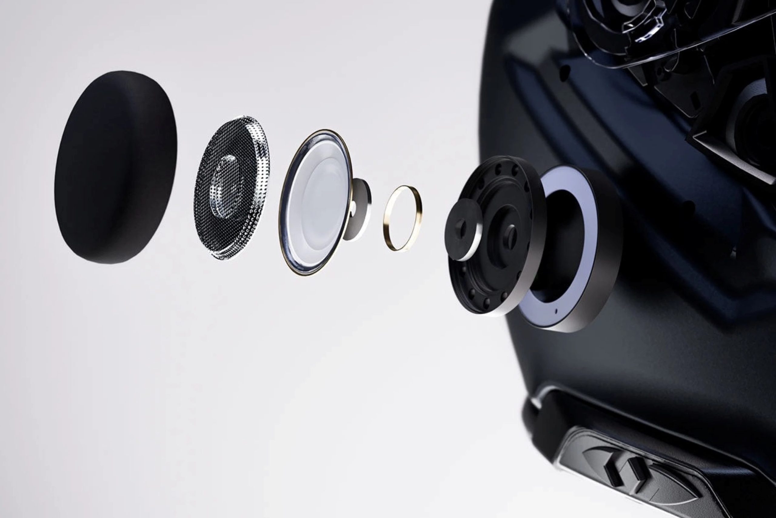 این نوآوری مهم در فناوری GT-Air 3، پیشرفت چشمگیری در امنیت و راحتی موتورسواران است. تمام سختافزارها کاملاً در پوسته کلاه ادغام شدهاند و نیازی به بخشهای خارجی نیست.