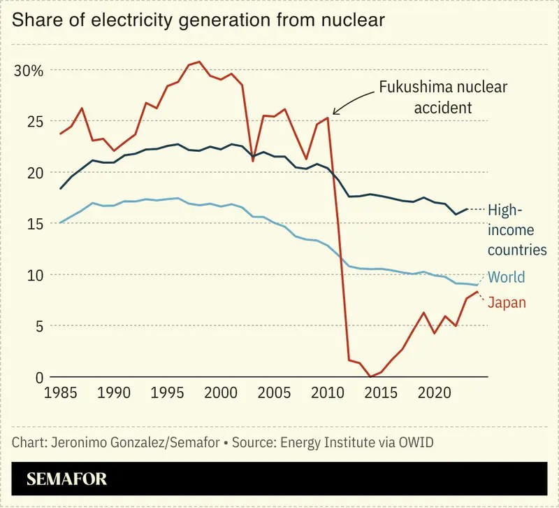 پیش از این، ۳۰ درصد برق ژاپن از هستهای تأمین میشد. راهاندازی مجدد این نیروگاه و ۱۴ نیروگاه از ۵۴ نیروگاه دیگر، برای مقابله با افزایش قیمت نفت و گاز و تضمین امنیت انرژی کمکربن صورت میگیرد. در سطح جهانی نیز، ۳۳ کشور متعهد شدهاند تا سال ۲۰۵۰ ظرفیت هستهای خود را سه برابر کنند.