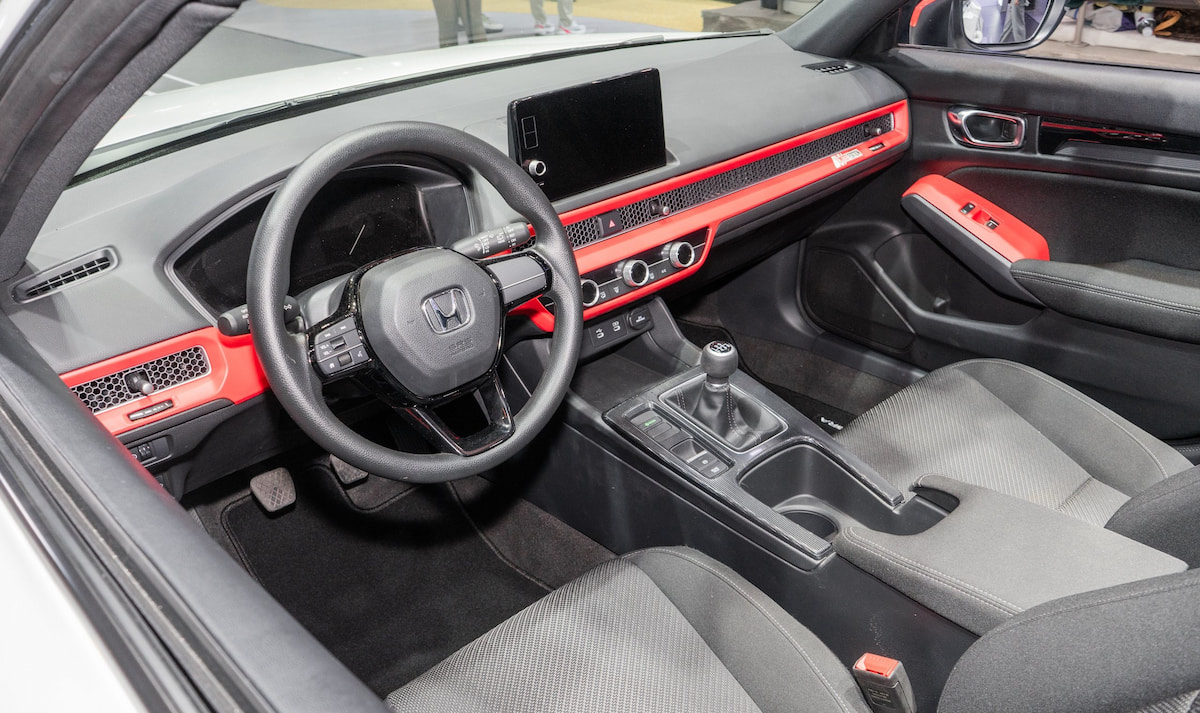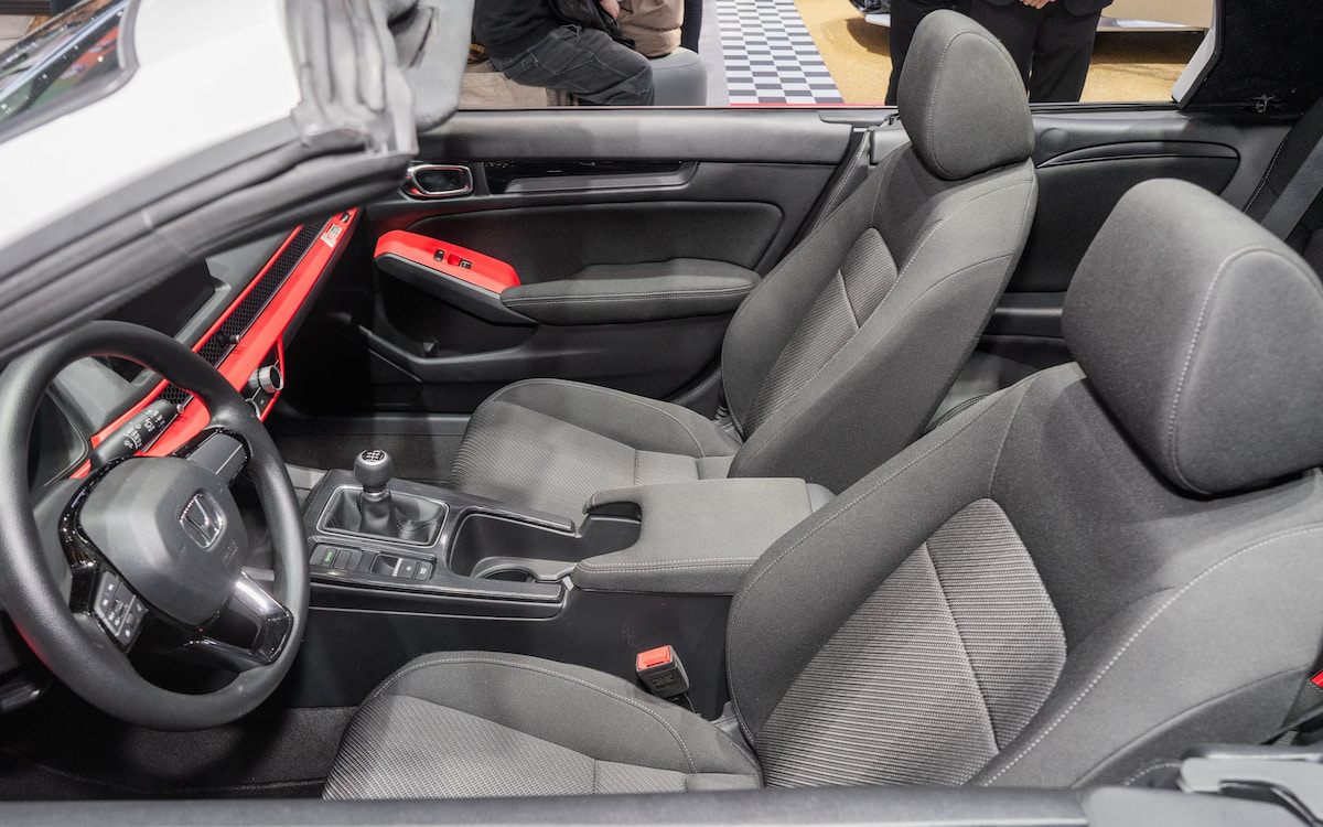 درون کابین، ساختار پنجنفره استاندارد حذف و جای خود را به طرح ۲+۲ با صندلیهای عقب کوچک داده است. داشبورد با تریم قرمز براق و دوخت اسپرت، فرمان سهپره با علامت Type‑R و اهرم گیربکس دستی فلزی با قاب مشکی از عناصر الهامگرفته از نسخههای مسابقهای هوندا هستند. نمایشگر اطلاعات در مقابل راننده ترکیبی از صفحهنمایش دیجیتال کوچک و نشانگر دور موتور آنالوگ بزرگ مرکزی است. در بخش صندلیها از پارچه طوسی و تکیهگاههای فوم تقویتشده استفاده شده تا حس کلاسیک بودن را افزایش یابد.
