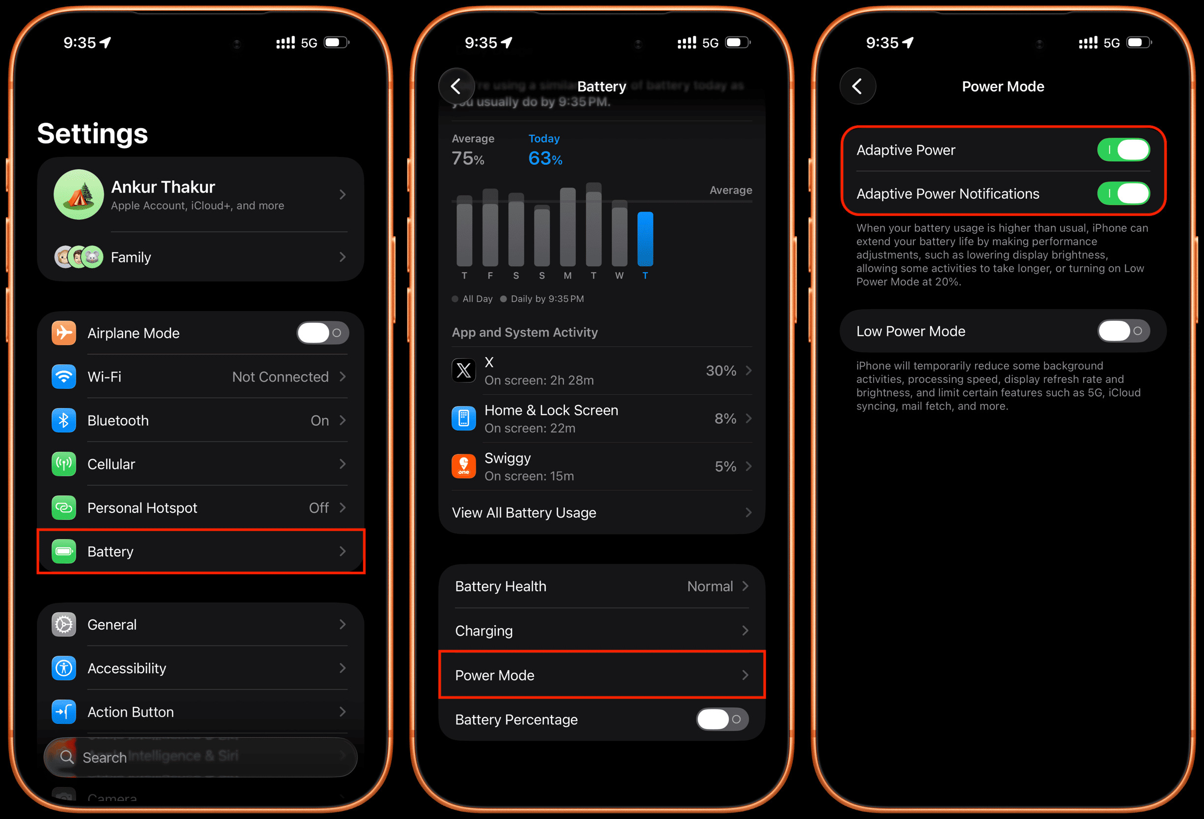 این ویژگی برای آیفونهای 15 پرو و مدلهای بالاتر طراحی شده است و با استفاده از هوش مصنوعی داخلی (on-device AI) بهترین روش برای کاهش مصرف باتری را پیدا میکند. ممکن است نور صفحه کم شود و برخی پردازشهای پسزمینه کند شود، اما تجربه کاربری روانی از Low Power Mode خواهد بود.