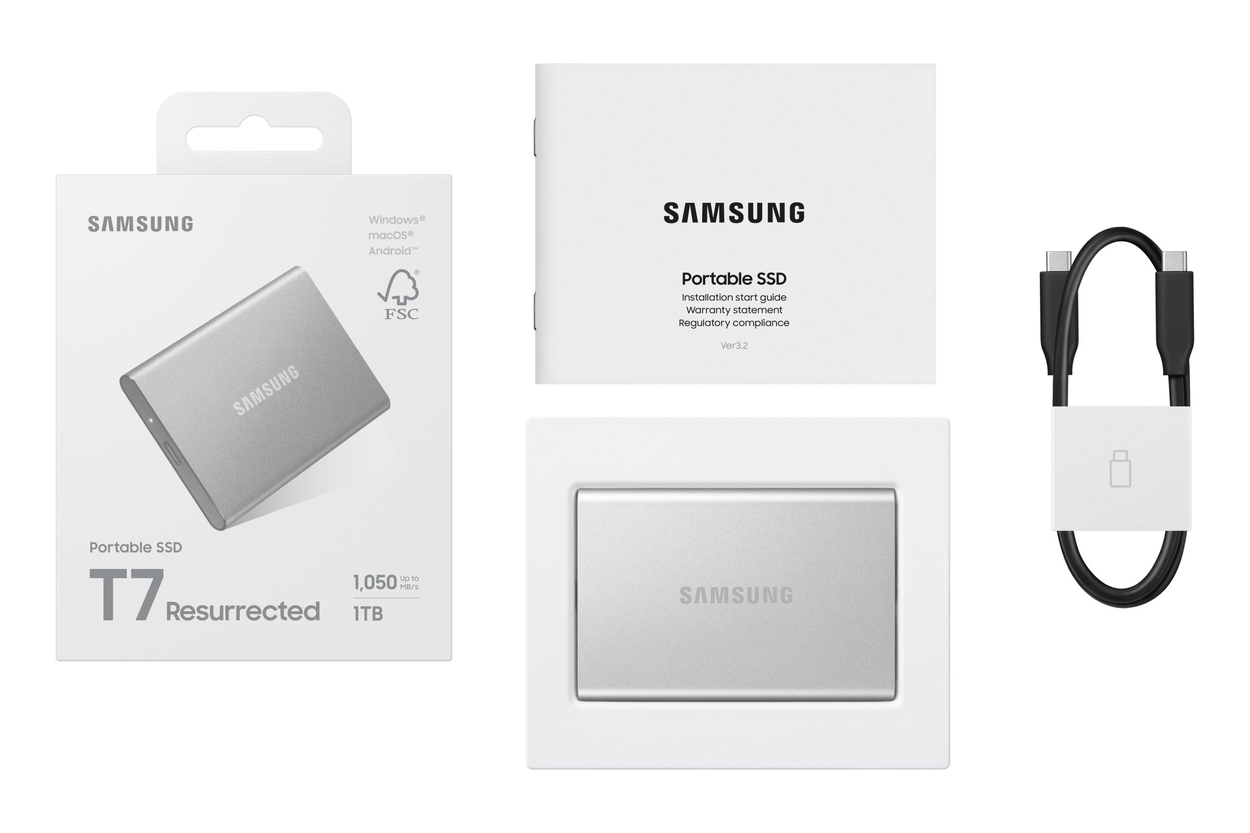 سامسونگ از حافظه SSD پرتابل T7 Resurrected رونمایی کرده است که نسخهای بهروز شده از مدل T7 محسوب میشود. این درایو با حفظ عملکرد مدل قبلی، تمرکز ویژهای بر پایداری محیط زیست دارد. بدنه این SSD پرتابل از آلومینیوم ۱۰۰ درصد بازیافتی ساخته شده که گواهی TÜV Rheinland را دریافت کرده است. این آلومینیوم از ضایعات تولید دستگاههای گلکسی سامسونگ گلکسی بهدست آمده است. سامسونگ همچنین فرایند رنگآمیزی را حذف کرده تا به پوشش طبیعی آلومینیومی دست یابد و مصرف مواد شیمیایی را کاهش دهد.