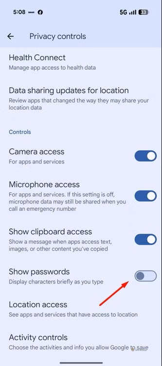 نحوه غیرفعالسازی نمایش رمز عبور: به Settings > Security & Privacy > Privacy Controls بروید و سوئیچ Show Passwords را خاموش کنید.