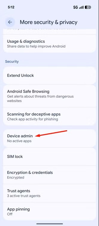 نحوه بررسی و سلب دسترسی مدیر دستگاه: به Settings > Security & Privacy > More Security & Privacy > Device Admin بروید. سوئیچ کنار هر اپلیکیشنی را که نمیخواهید دسترسی مدیر دستگاه داشته باشد، خاموش کنید.