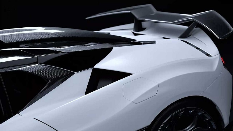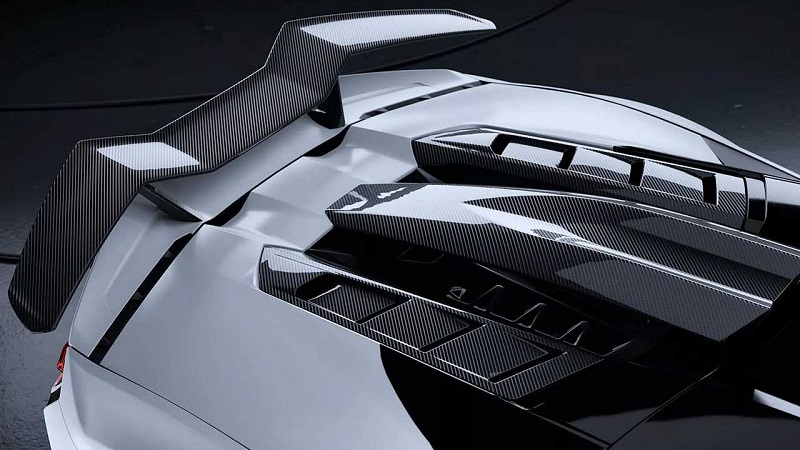 نمای عقب مجهز به یک باله ثابت بزرگ شده که پیش از این در مدل افسانهای گالاردو سوپرلگرا وجود داشت. روی سقف دو ورودی هوای دیگر قرار دارد و یک دیفیوزر هم به خشنتر شدن چهره ظاهری کمک قابل توجهی کرده است.