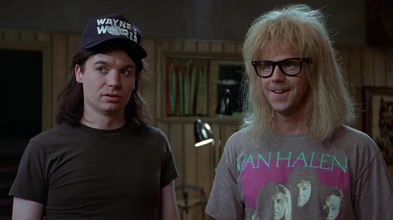 «دنیای وین» (Wayne’s World) محصول ۱۹۹۲، اسپینآف کمدی محبوب شنبه شب زنده با بازی مایک مایرز و دانا کاروی است. این فیلم درباره وین و گارت است که از زیرزمین خانهشان یک برنامه تلویزیونی پخش میکنند و سعی دارند در برابر تصاحب شرکتهای بزرگ مقاومت کنند. فیلم، گذار از دهه ۸۰ به ۹۰ را نشان داد، با حس و حال جوانان بیتفاوت میانه غرب آمریکا همخوانی داشت و هجو هوشمندانهای از فرهنگ پاپ و تبلیغات تجاری آن دوران ارائه داد.